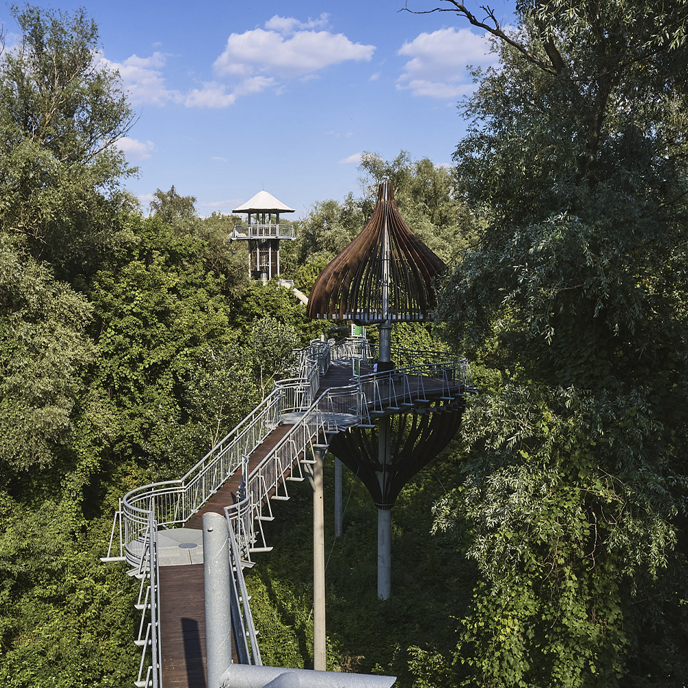 Canopy Walkway – a unique stroll among the treetops, 10 meters high, with views of the Maros riverbank and nature.
